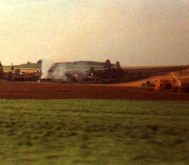 ![]() You never knew what you'd see driving around the countryside. Here's a house on fire near one just being built. |