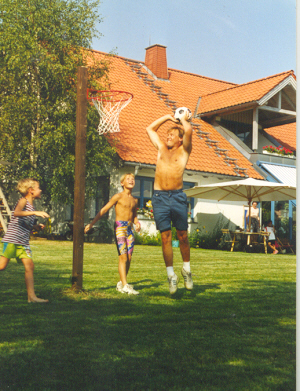 ![]() I dunk over the heads of a group of stunned German children. AirShea! Beautiful new house in the background. |