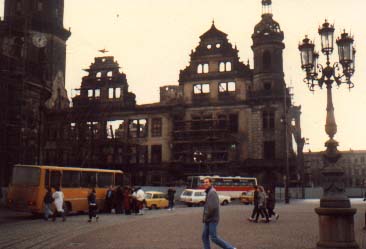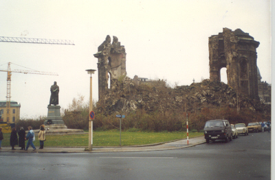 ![]() Dresden on the Elbe River. Martin Luther guards a pile of rubble left over from the war (1945!). Polluted and rotting, yet with occasionaly glimpses of its former splendor (before being nearly firebombed off the face of the earth at the end of World War Two). |