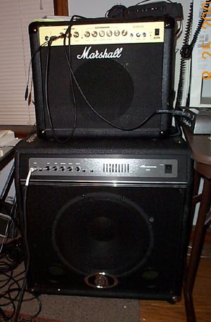 ![]() A 30 Watt Marshall Guitar ampG30RCD Enough drive to make your ears bleed 200 Watt Ampeg B-2 Bass Amp | |