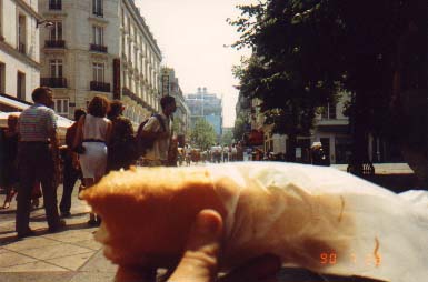 ![]() After making fun of Americans and McDonald's the whole ride there, some of my German companions decided they didn't want to shell out the francs for a good French lunch and proceeded to eat at - McDonald's!!! Having good American sense and taste, I found a small store selling delicous baguette sandwiches and enjoyed a peaceful, German-free lunch in a small park.I even documented this event with a photo of my half-eaten baguette. |