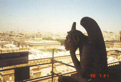 ![]() A lonely, bored gargoyle looks down from Notre Dame over the city. |