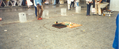 ![]() One of my first views of Paris street performers - some guy walking on broken glass, nails, fire, etc. |