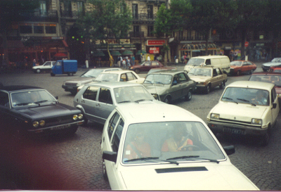 ![]() Paris traffic - drive anywhere you want, park on the sidewalks with the funny little cars. Notice the blue scooter-wagon in the back. |