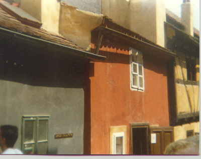 ![]() Tiny hut where writer Franz Kafka lived. Built right into the city wall, you had to stoop to get through many of the rooms. | |