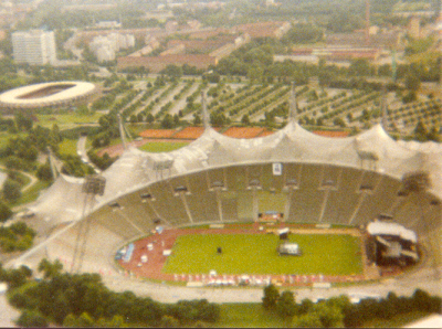 ![]() 1972 Olympic Stadium in Munich, across the highway from the BMW headquarters. Michael Jackson played a concert there that night (1989?). Germany's best soccer team, Bayern München plays there. | |